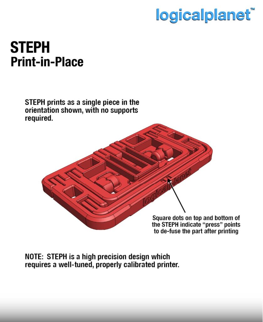 STEPH is a high-precision print-in-place design and benefits from a well-tuned, properly calibrated printer.