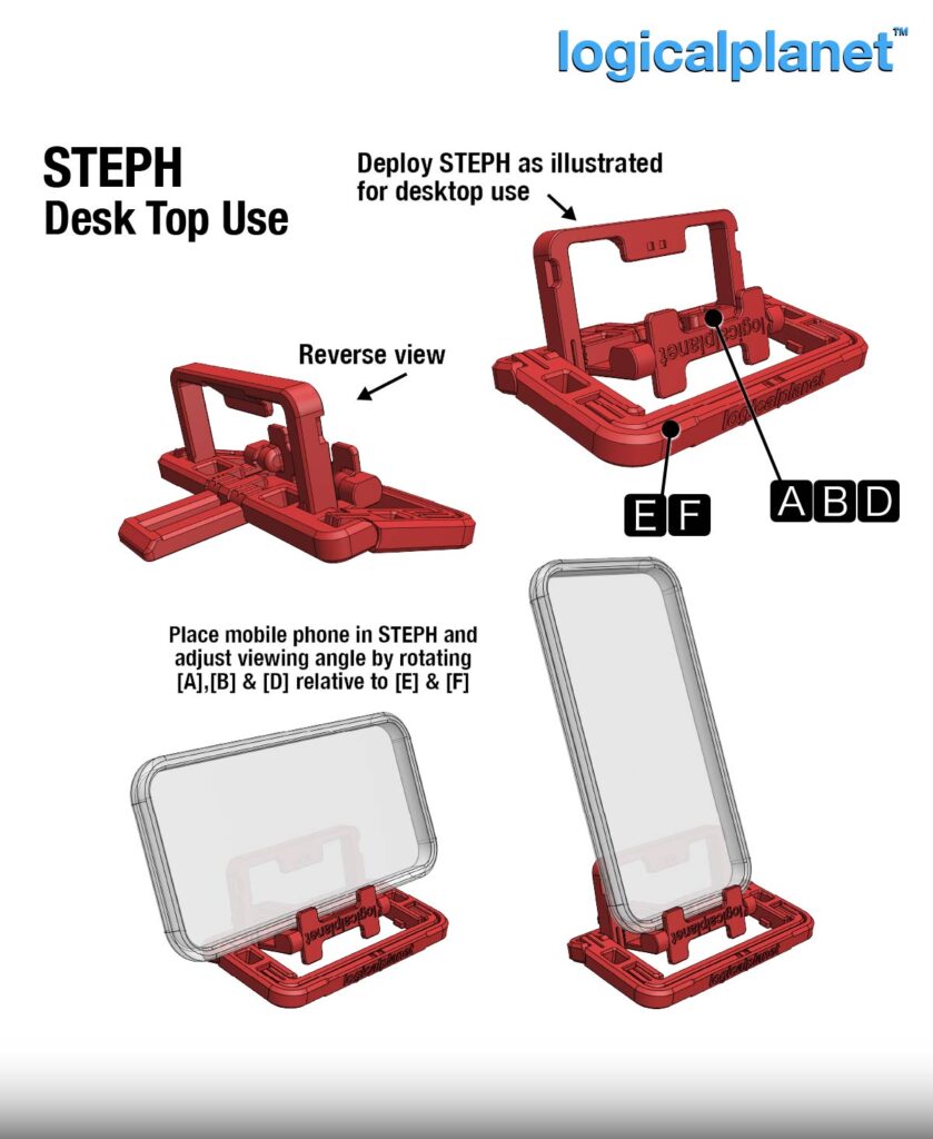 Like the original Phone Multi Widget, STEPH follows a satisfying kinetic mechanical design philosophy that transforms from compact to functional through clever motion. Where the Phone Multi Widget explored versatility across many environments, STEPH refines that idea into a simpler, purpose-built tool for modern screens and workspaces.