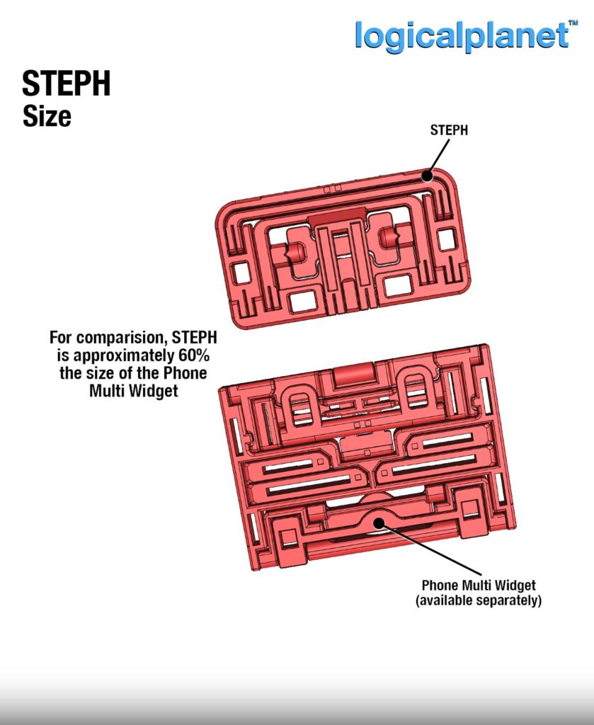 When folded, it collapses into a slim, pocket-sized form that takes up very little space. Compared to the original Phone Multi Widget, STEPH is significantly smaller while remaining highly functional.