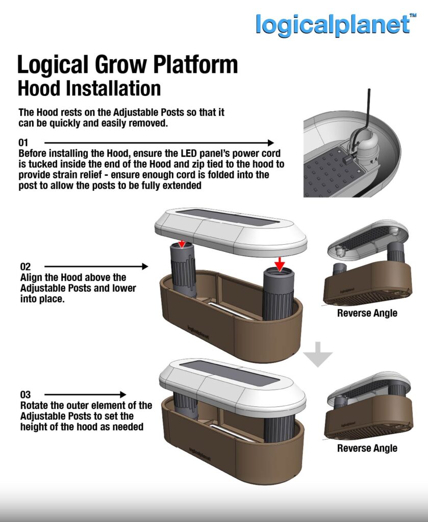 Once sprouts appear, lower the hood close to the seedlings for strong early growth. As plants stretch, rotate the posts to raise the light smoothly.