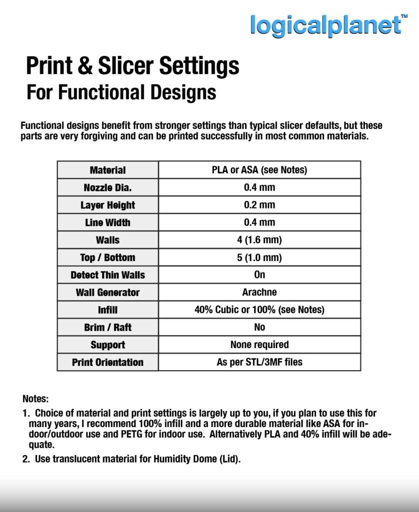 PLA works perfectly for indoor growing. For longer-term durability or higher humidity environments, PETG or ASA are excellent options.